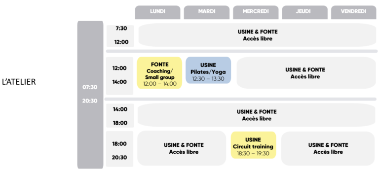 Nous recommandons de réserver nos cours collectifs en ligne. Vous pouvez réserver vos cours jusqu’à 7 jours à l’avance.Une confirmation vous sera adressée par courriel pour toute réservation à un cours.